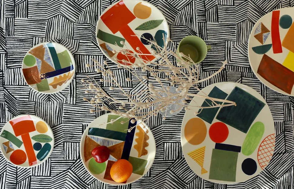 The Spring Oak Side Plate is decorated with an abstract design in a seasonal spring palette. Every plate is painted by hand, meaning each one is unique.